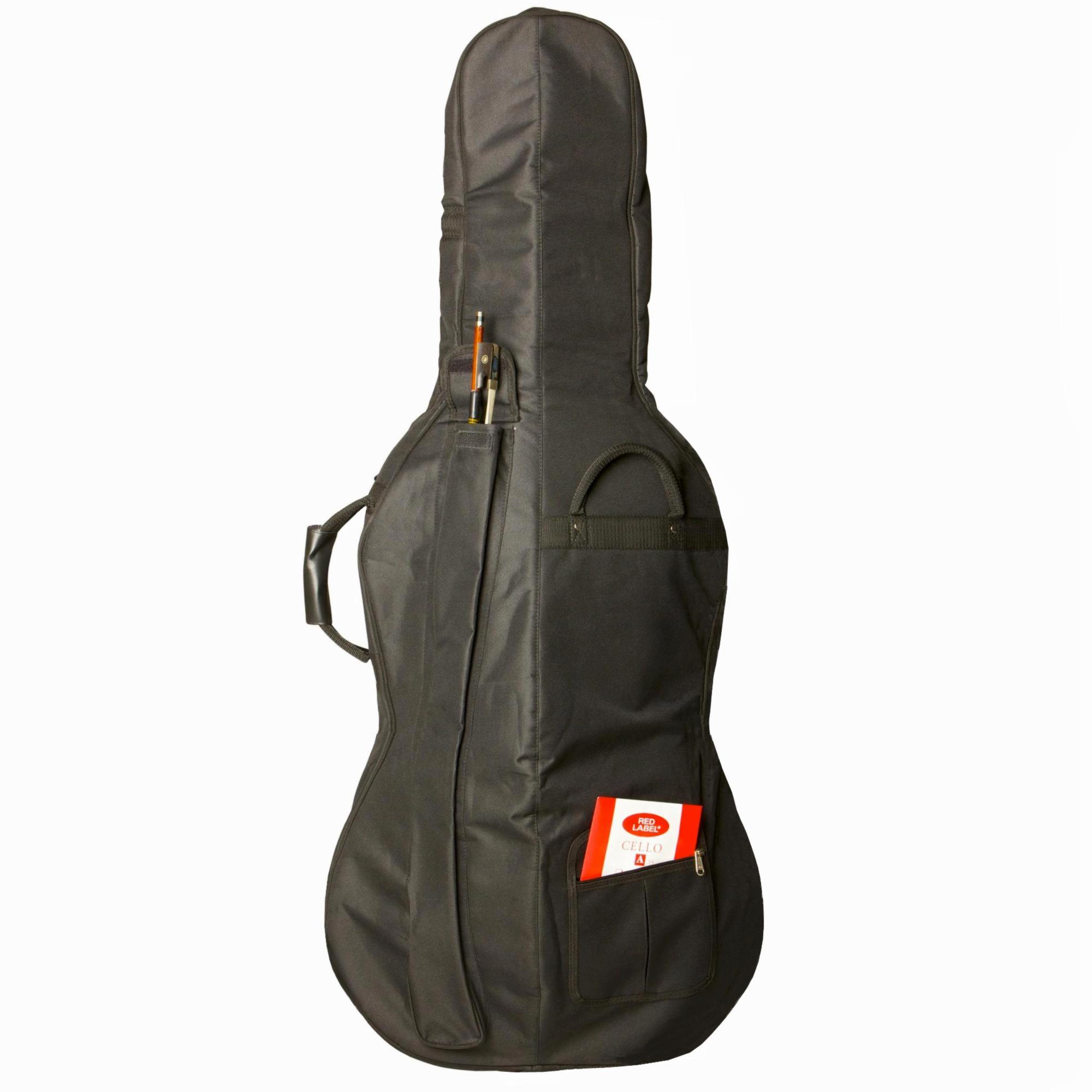 The Klaus Mueller Prelude cellos have laminated spruce and maple construction which enhances durability, yet retains an even, warm tone. Two piece back. Scroll of solid maple. Each cello is professionally shop adjusted by our experienced, in-house luthiers, to assure excellent playability. Finished in a dark red-brown on a golden ground. Outfit includes rosin, and your choice of case and bow. If you have ordered a Thermoplastic case, it will arrive in a separate package. Made in China.