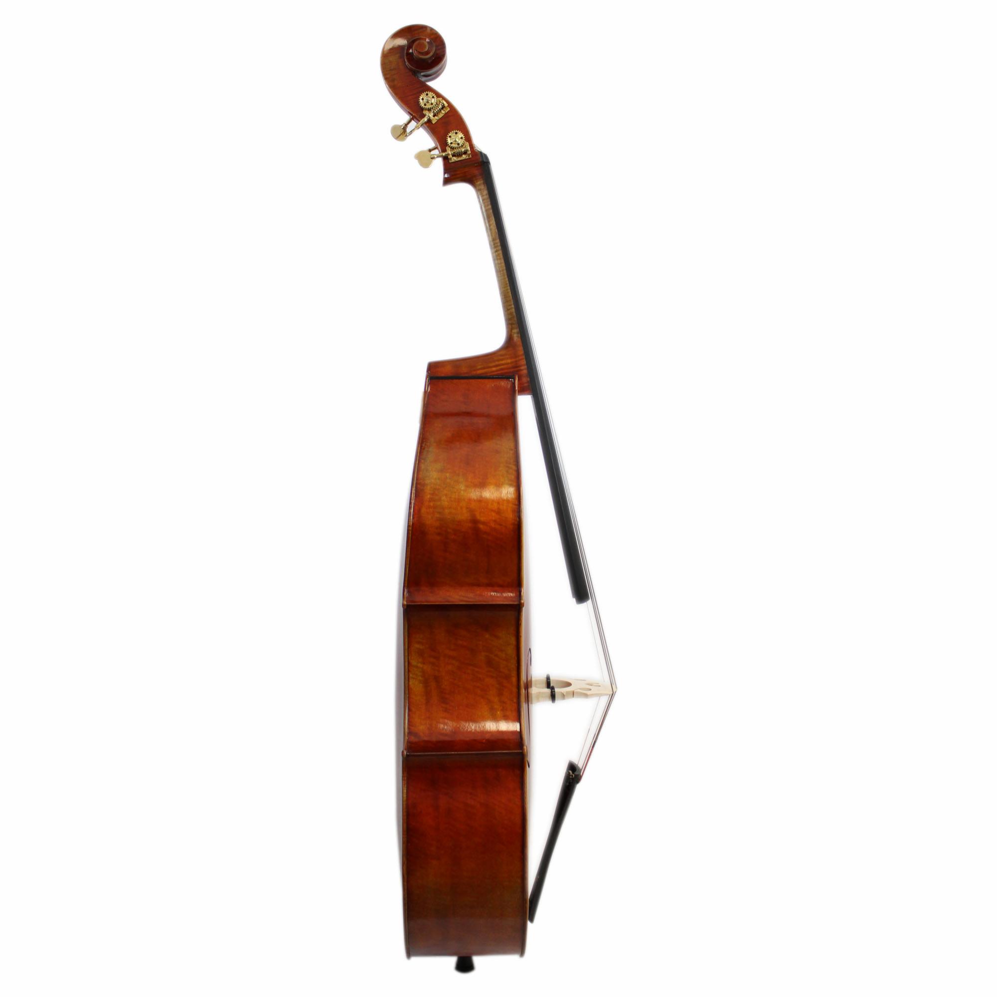 The new Yuan Qin Maestro bass is hand carved from solid select, and aged tonewoods. It has a beautifully even, round tone, with excellent projection. Nicely balanced, with lovely aesthetics. Great orchestral or solo performer.