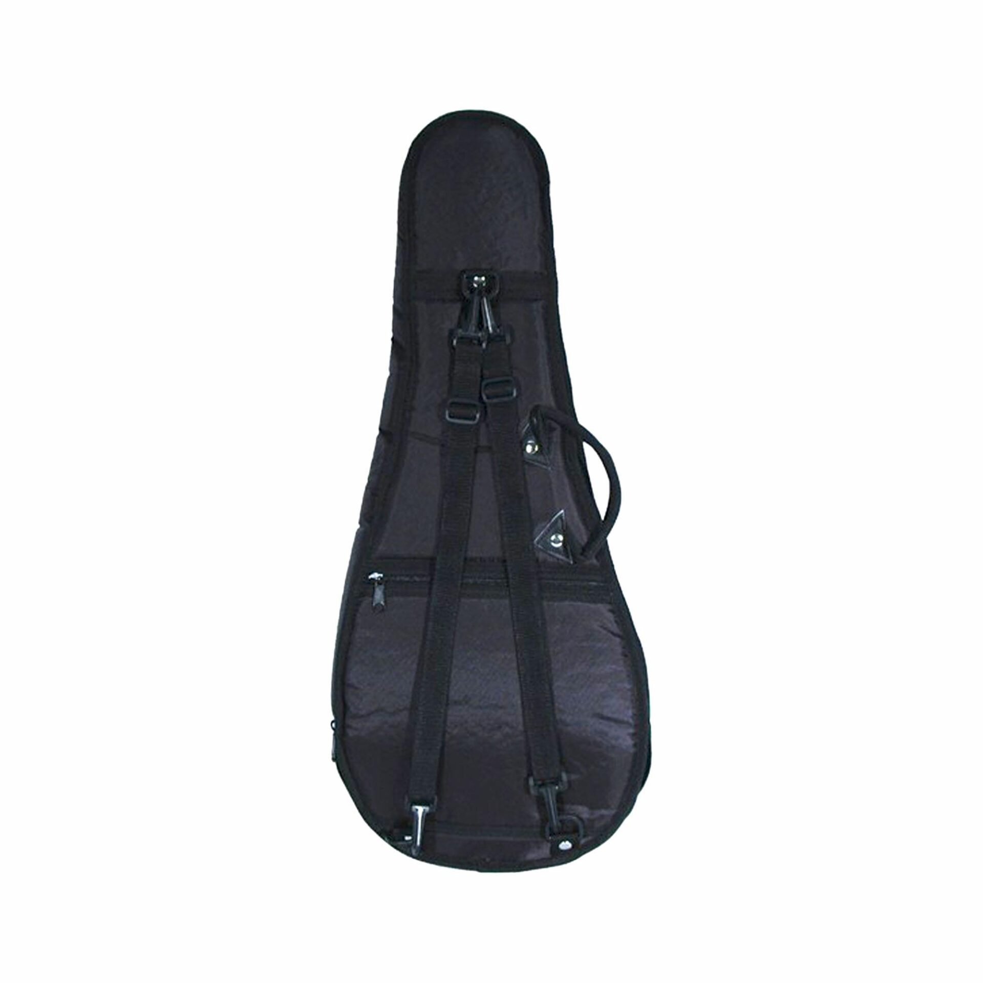 Exterior: Mandolin form. 28.5″ x 11″ x 4.5″. 0.9 lbs. Black nylon over thin padding. Fastens with zipper. Small and large accessory compartments with zippers. Side handles. D-rings for backpack straps (included). Stitched piping.