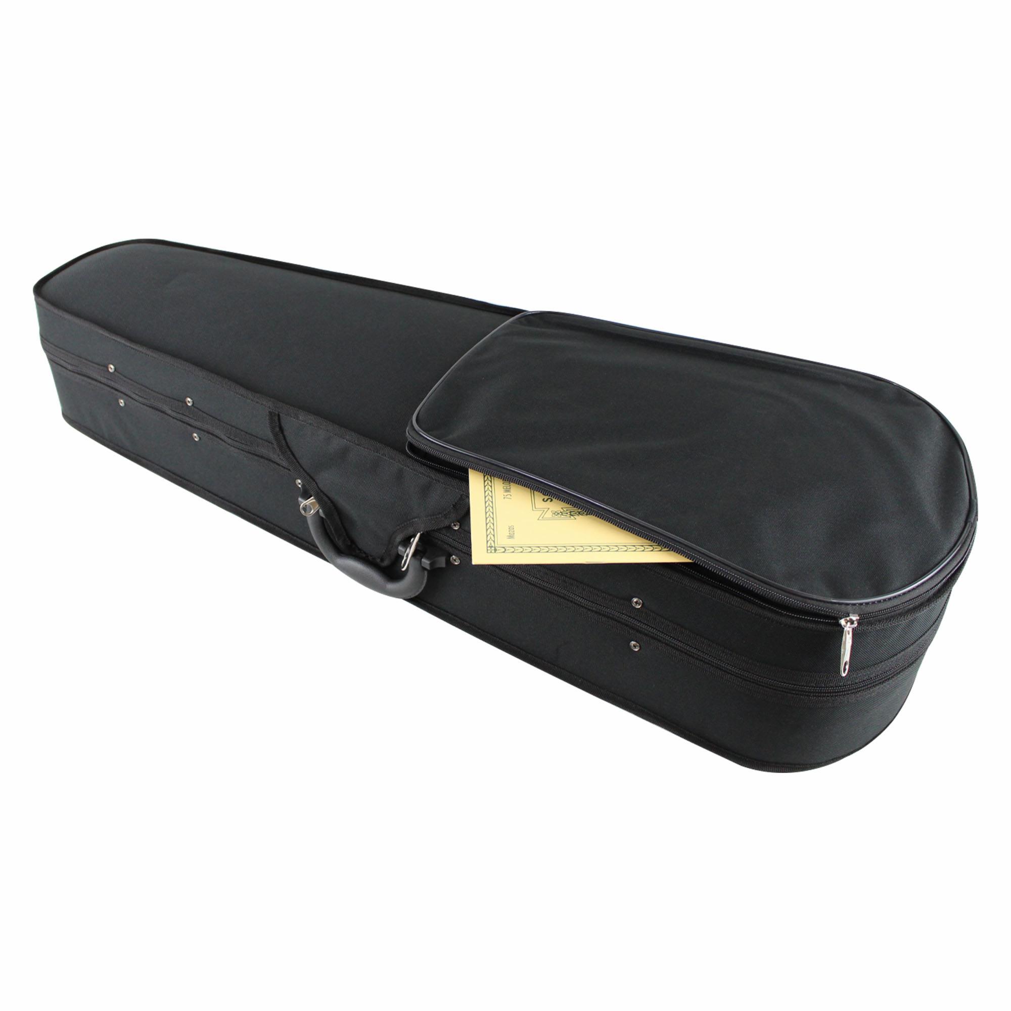 The Prelude viola case has a traditional shape that is constructed of a light weight Styrofoam shell. The black nylon exterior has a zipper closure, an accessory pocket, a side carrying handle and two attached straps for backpack carrying option.