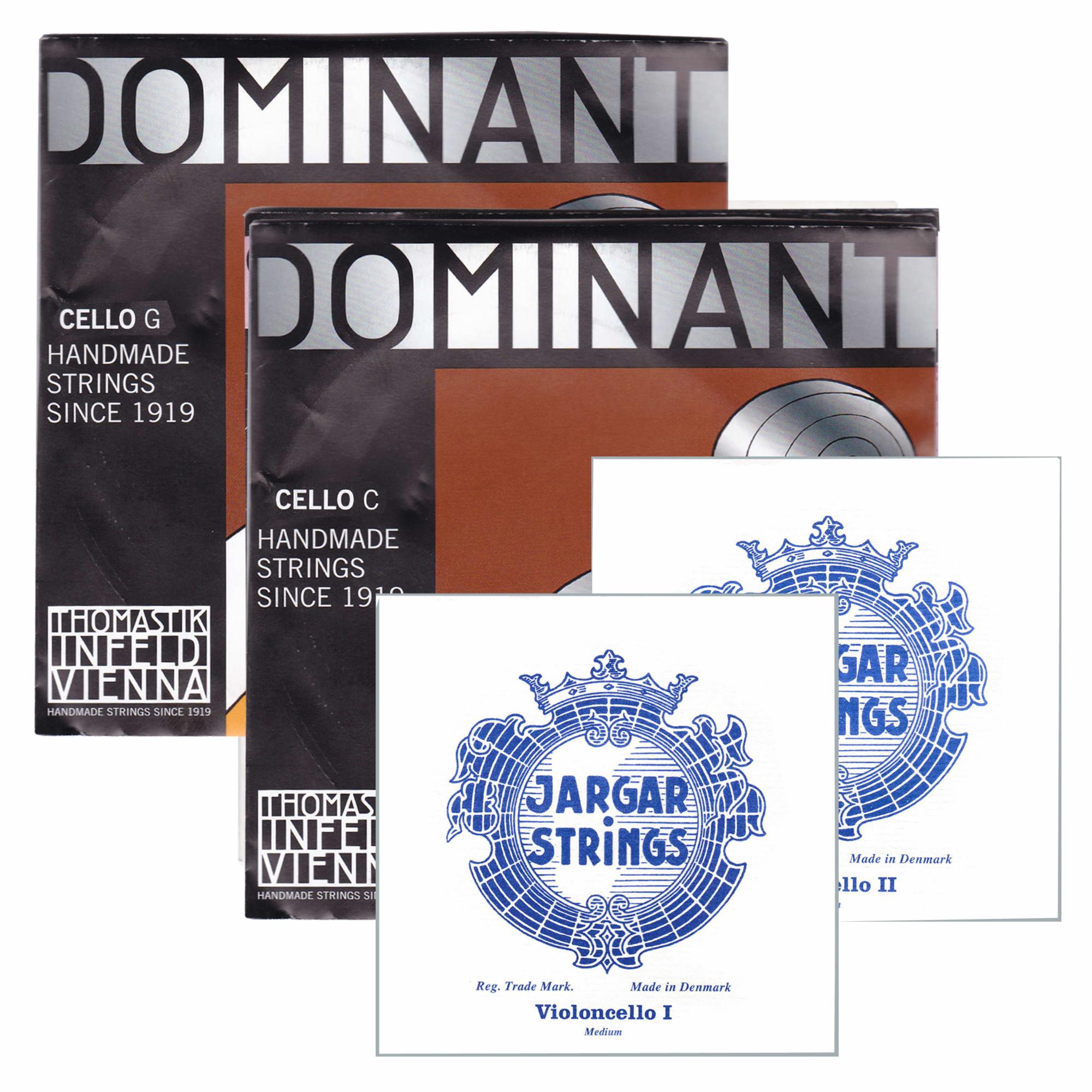 In addition to the full sets of either Dominant or Jargar cello strings, another popular option among cellists is to balance the brightness of the Dominant G and C strings with the warmer Jargar A and D strings.