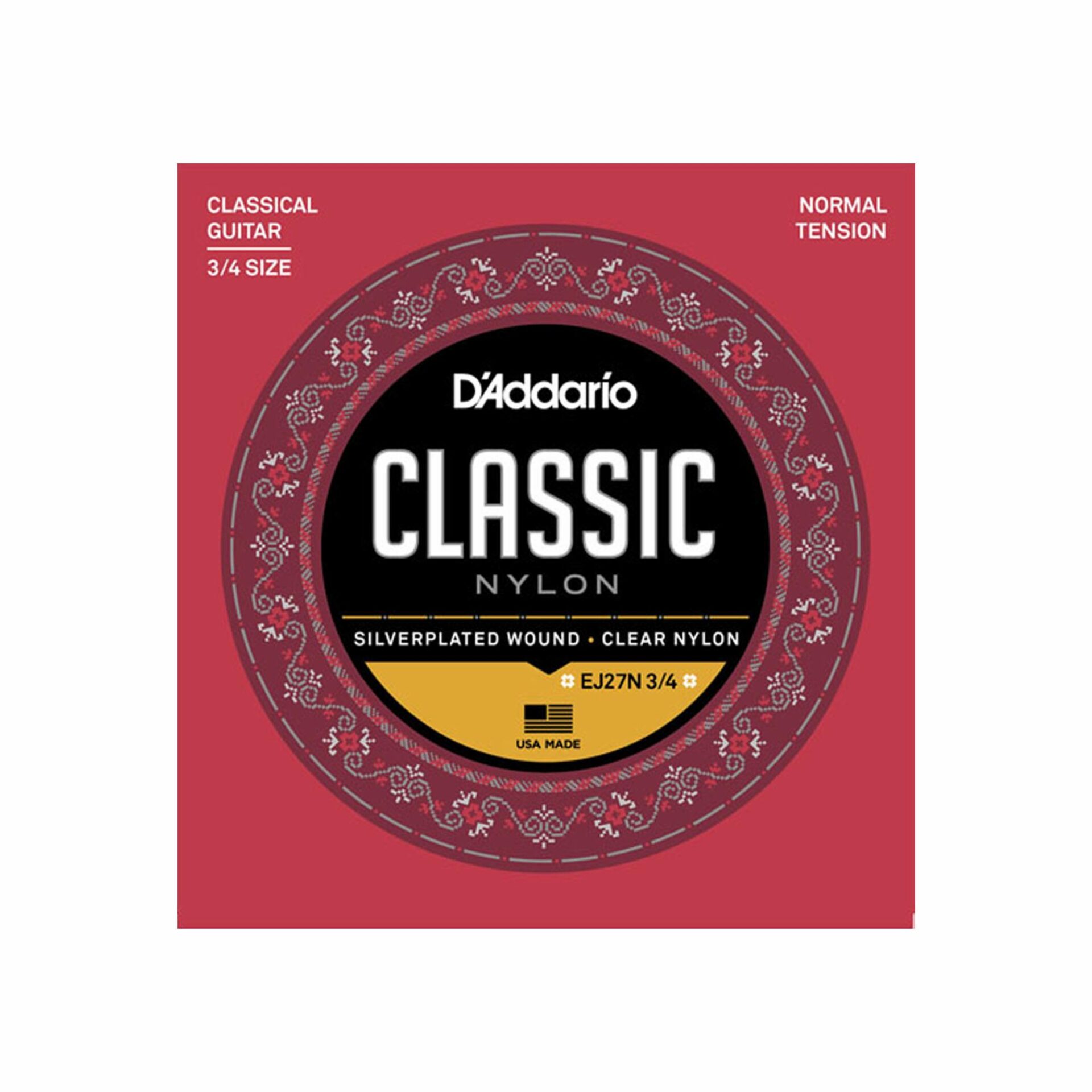 D’Addario’s EJ27 Classic Nylon guitar strings are great for beginners, students and professionals alike. Each set contains 3 clear nylon trebles and 3 silver-plated copper wound basses for the optimal balance of warm and projecting, long lasting tone. Each set is held to the same high standards as our professional string sets and may be used for all players looking for an inexpensive, but reliable set. The normal tension set is available for 4/4, 3/4, and 1/2 size classical guitars. The Hard tension set is available in 4/4 only.