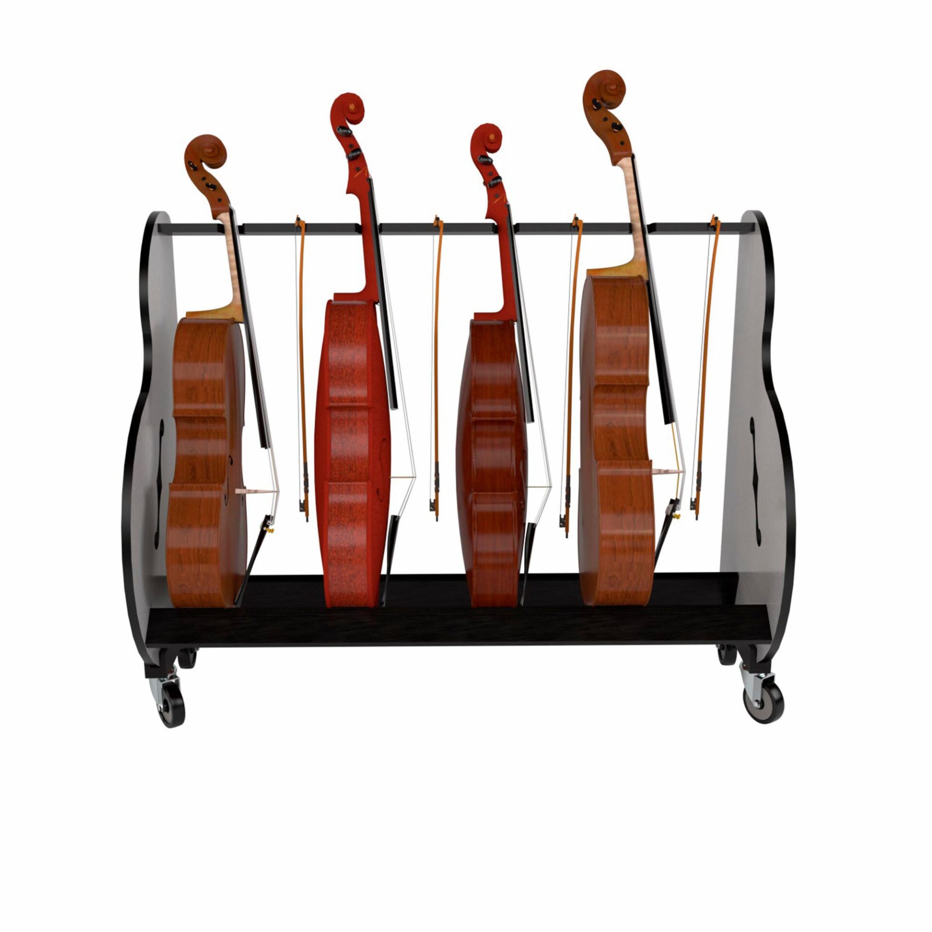 High quality wheeled cart for multiple cello storage. Assembly required, the only tool needed is the included allen wrench. Installing bow hooks is optional, and will require drilling a pilot hole.