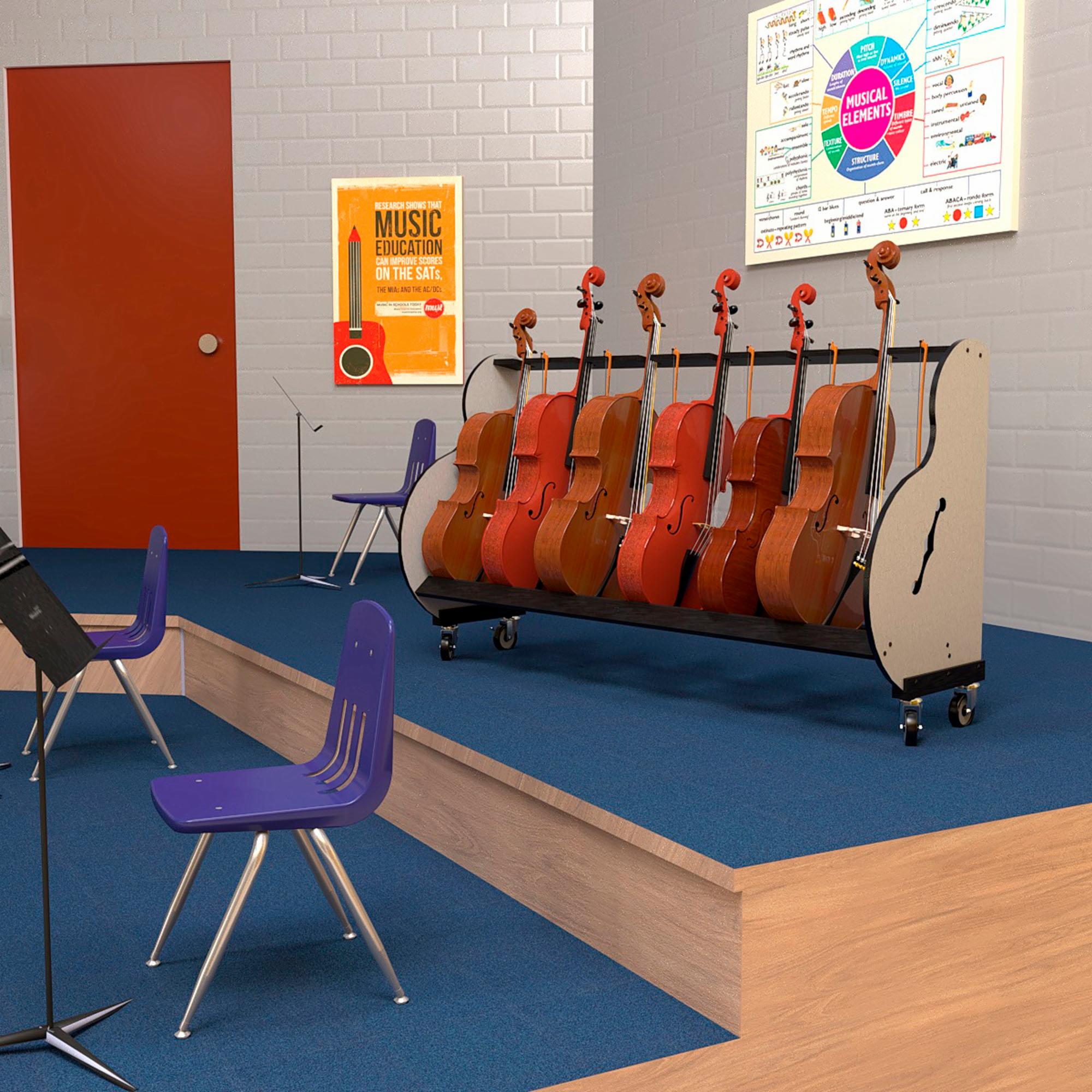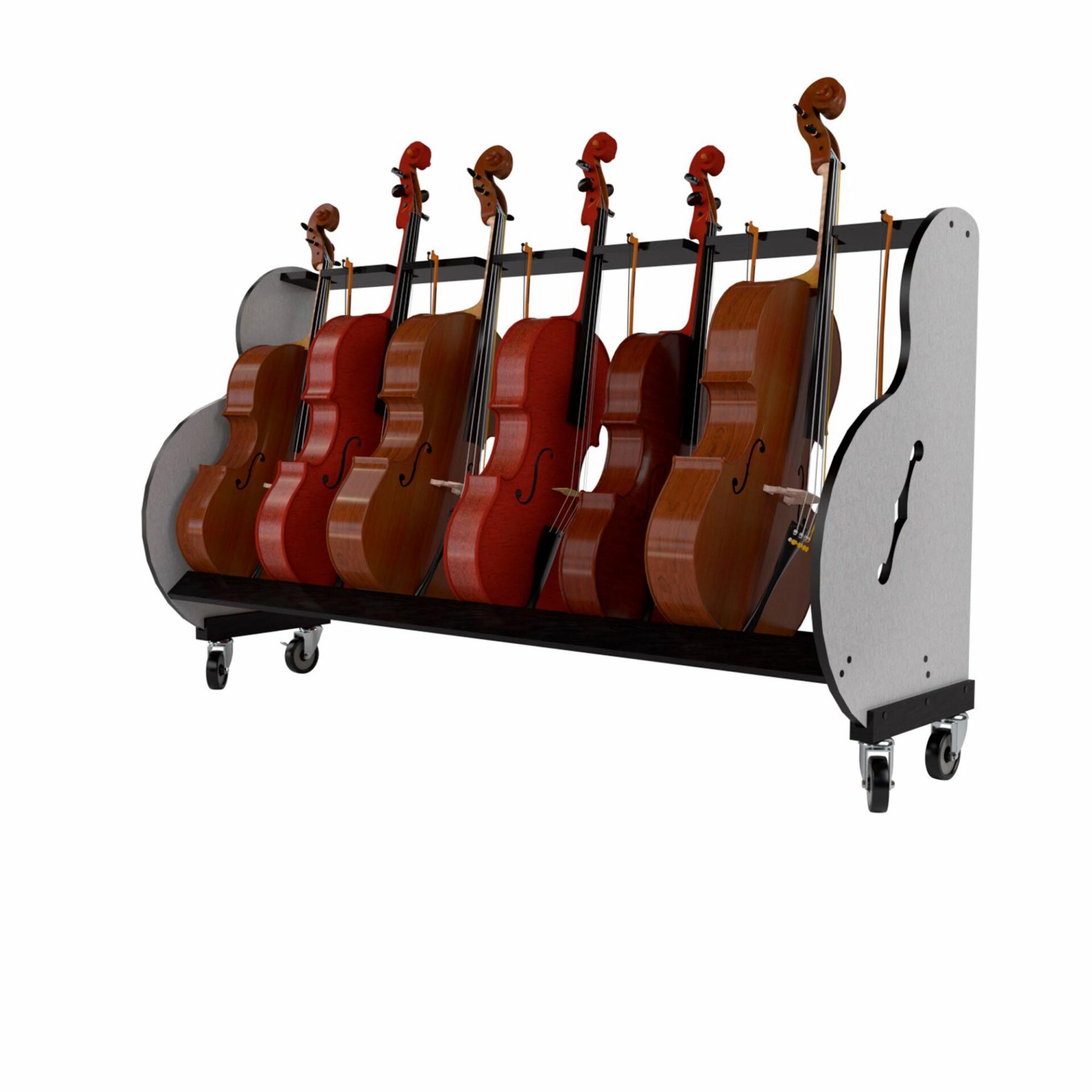 - BRC6 holds 6 cellos and bows; 76″w, 23″d, 43″h