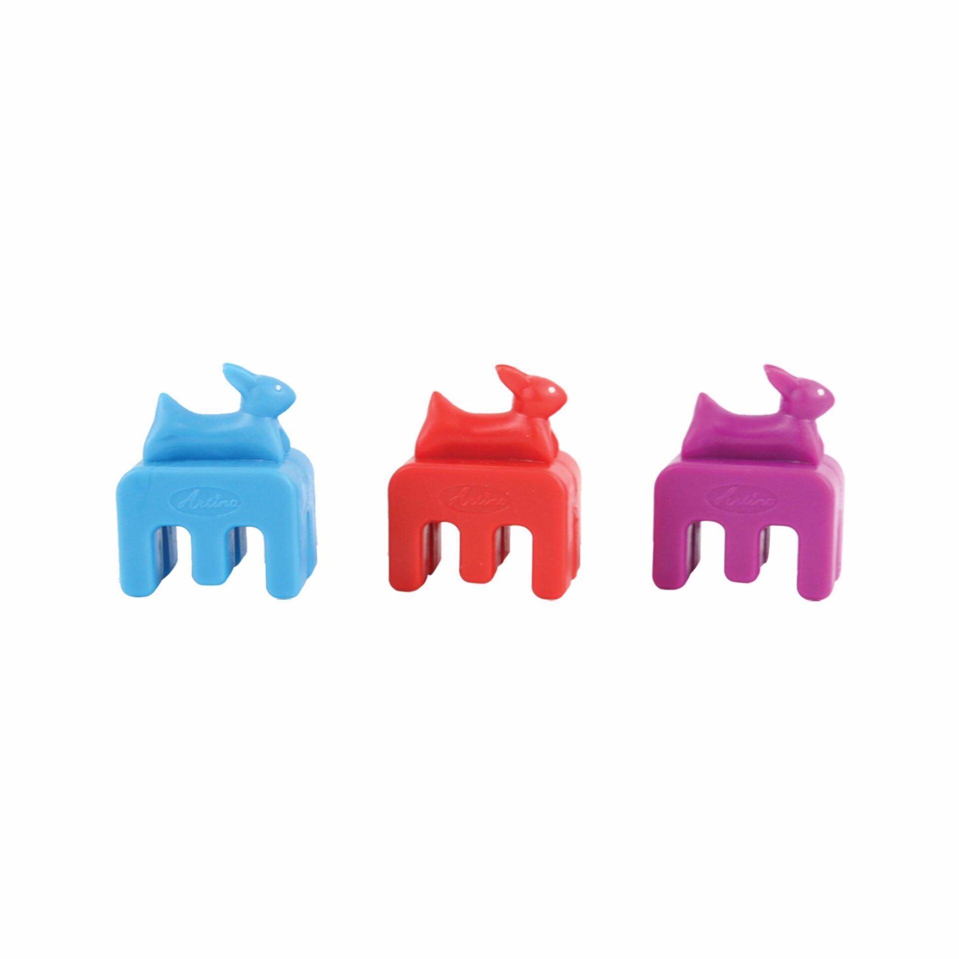 The Artino Petite “Rabbit” practice mute has a metal core with a protective rubberized coating. It produces a pronounced muting effect, while the rubber surface protects the bridge.