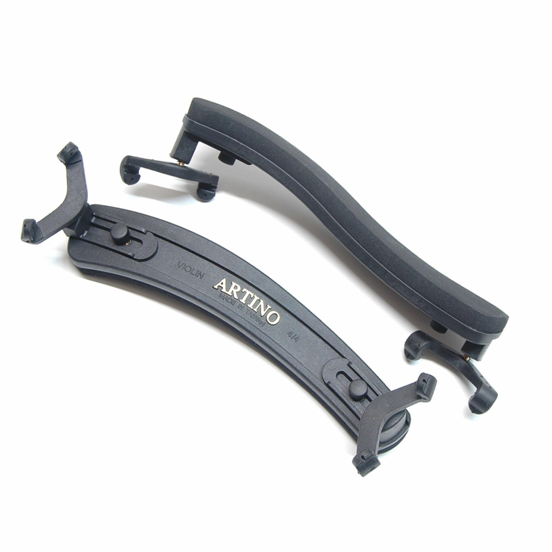 The Artino Comfort shoulder rest offers quality at an affordable price. The contour black plastic bar is covered with comfortable foam. The Artino Comfort shoulder rest has height and width adjustments and secures to the instrument with rubber and plastic end members. End members have a sliding mechanism for width adjustment.