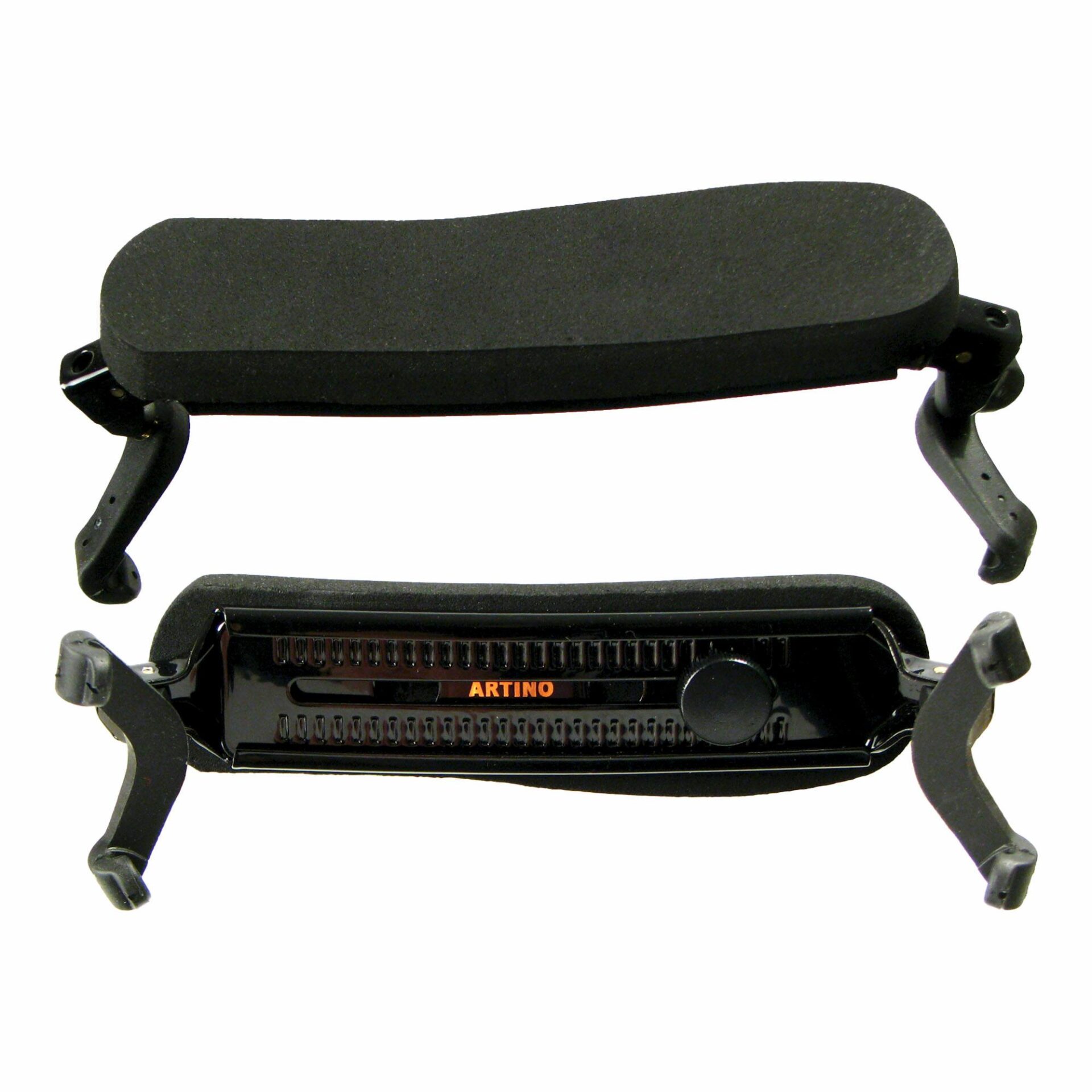 Artino has also introduced the “Fits-More” rest. This will fit viola sizes 17″- 12″, and violin sizes 4/4 – 1/2. Rubberized padding is attached to an adjustable lightweight alloy frame.