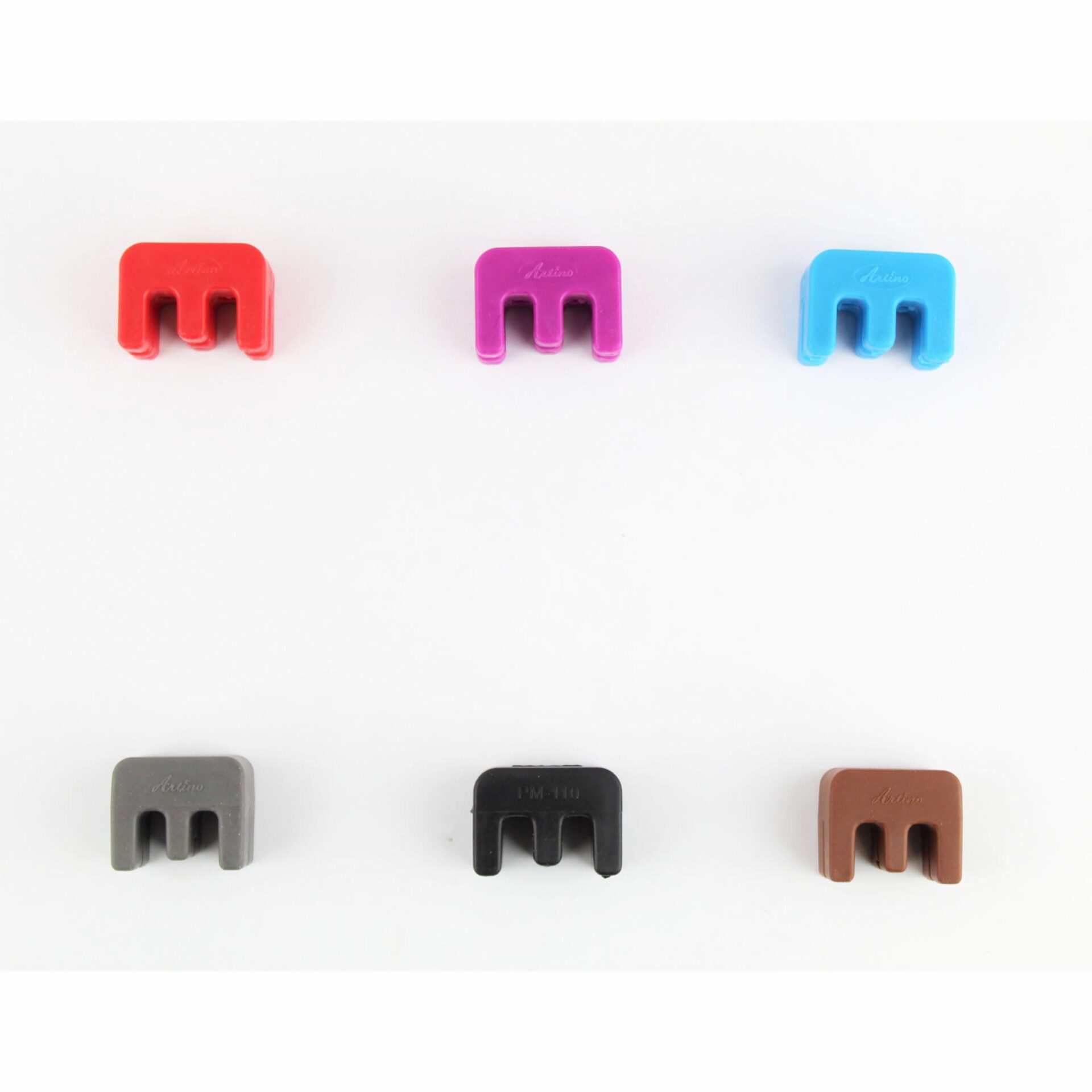 The Artino Petite practice mute has a metal core with a protective rubberized coating. It produces a pronounced muting effect, while the rubber surface protects the bridge.