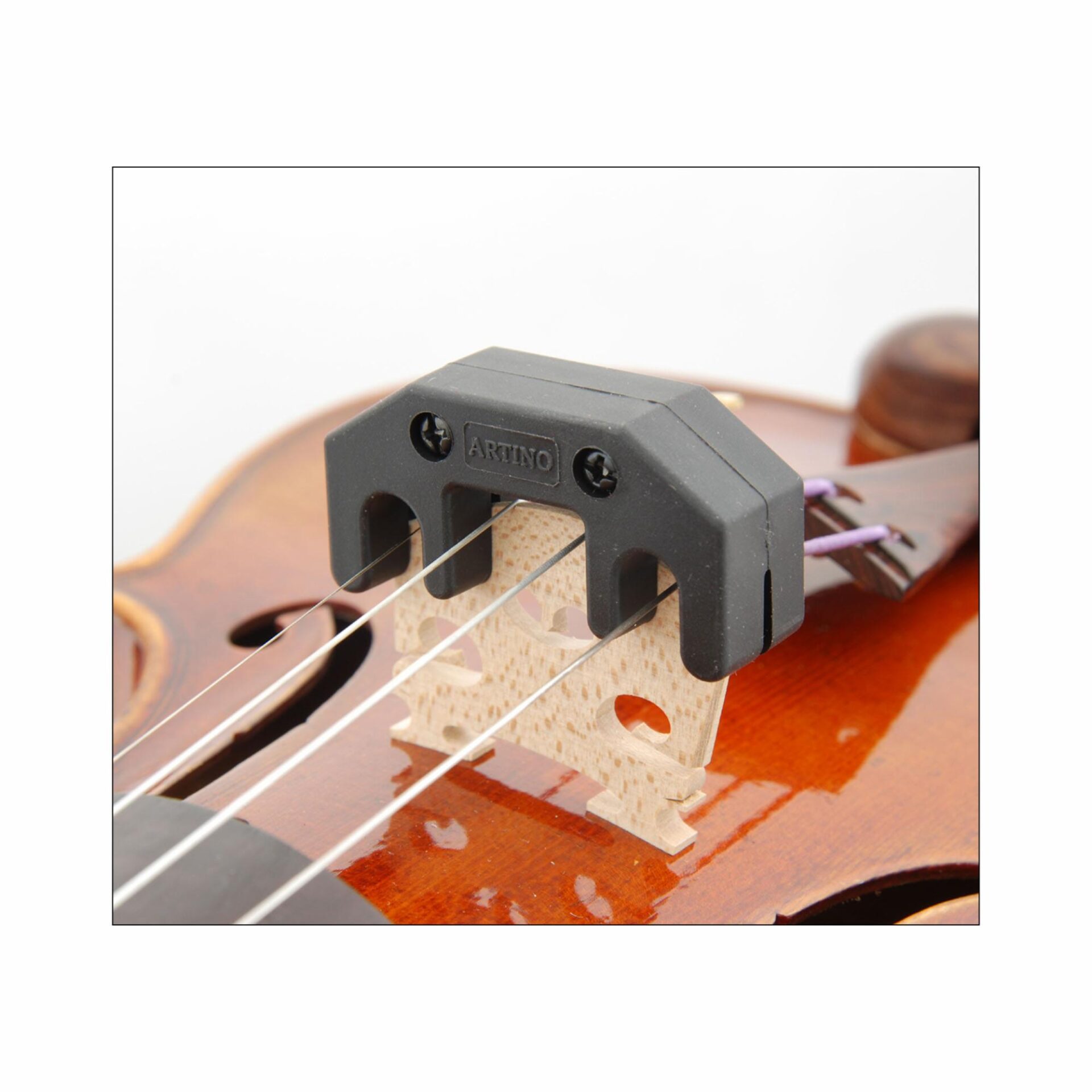 The Artino practice mute has a metal core with a protective rubberized coating. It produces a pronounced muting effect, while the rubber surface protects the bridge.