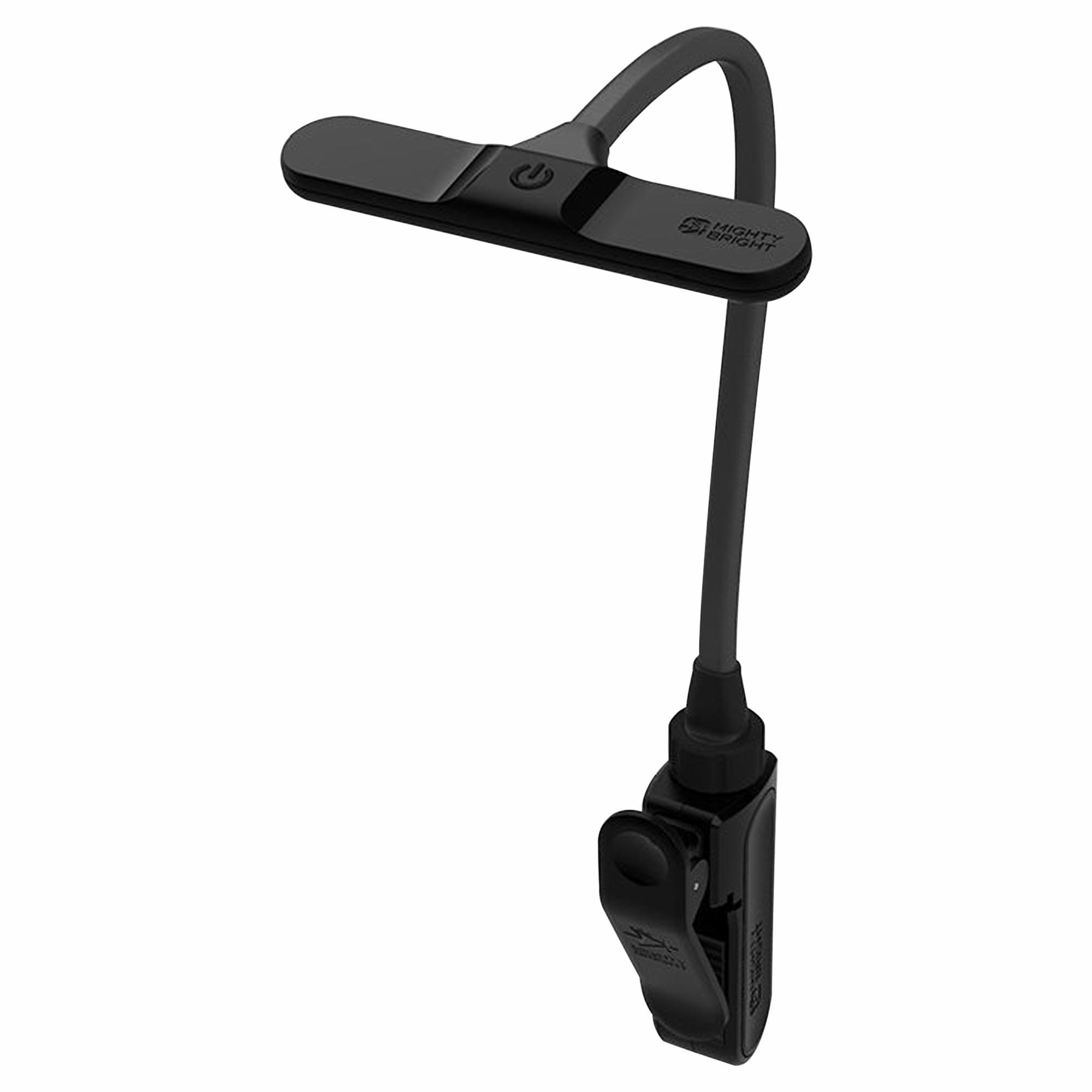 The BrightFlex’s padded strong-grip clip clamps onto any surface up to 1.5″ thick. It has a sturdy, adjustable 1′ gooseneck that twists into any position where you need light.